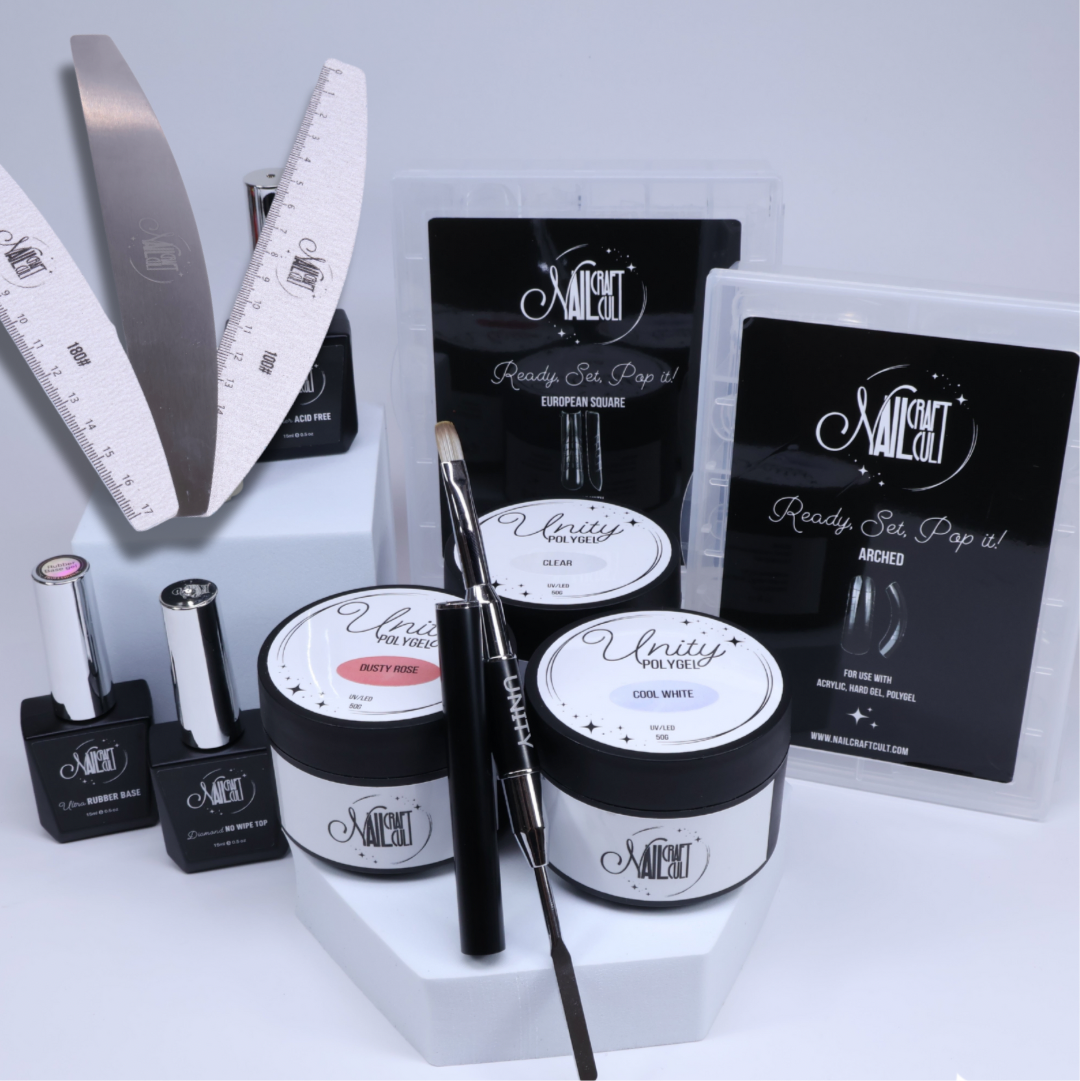 - 3 × 50 gram Unity Polygels: Clear, Dusty Rose and Cool White